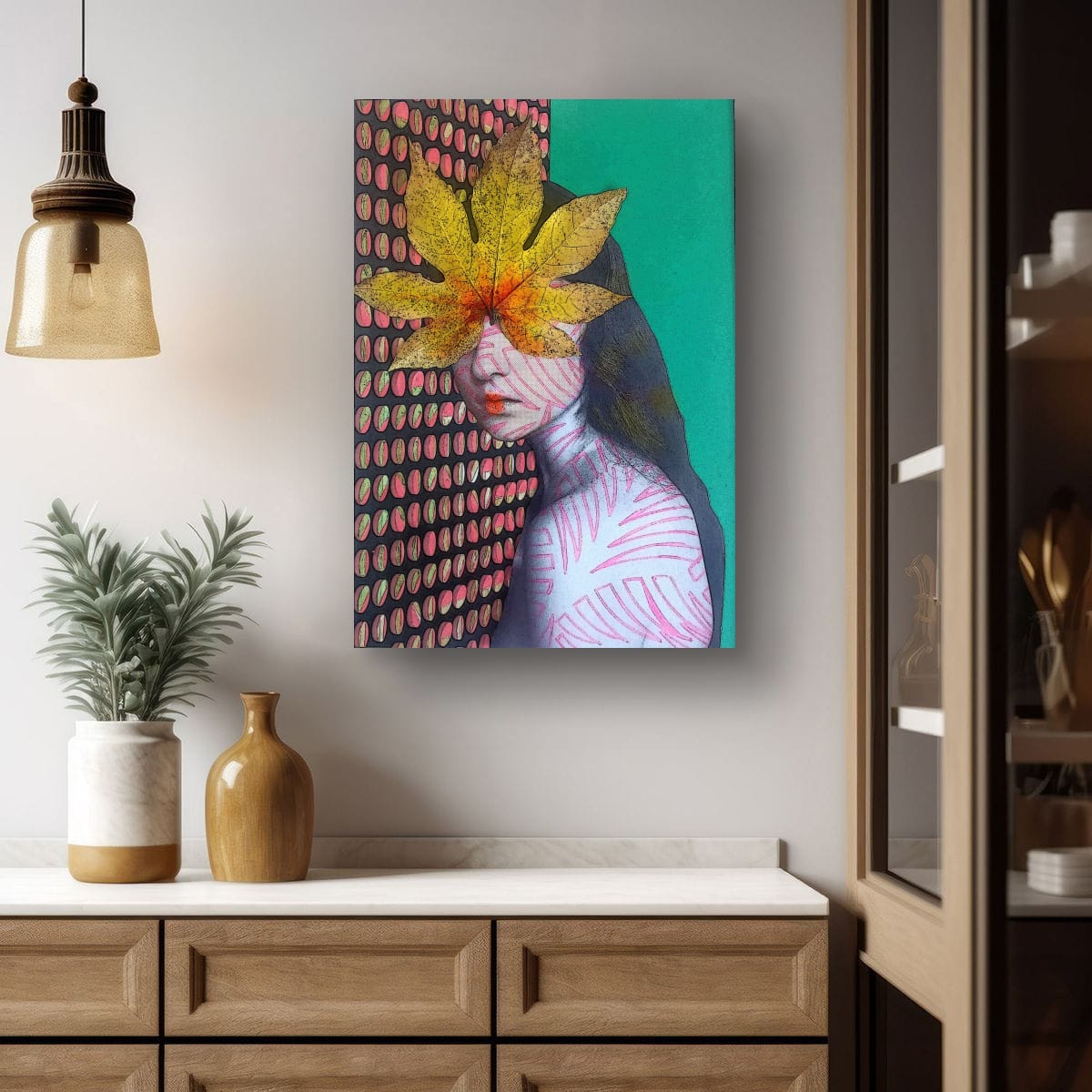 ARALIA 2 — Ritratto femminile surreale con foglia e sfondo geometrico