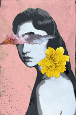 MARYGOLD II - Minimalist Female Portrait Print with a Yellow Flower